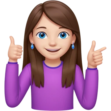 11 year old girl, blue eyes, brown long ish straight hair, smile and two thumbss up with stud earings and a pink shirt, and that you can see my whole body, and no teeth in my smile emoji