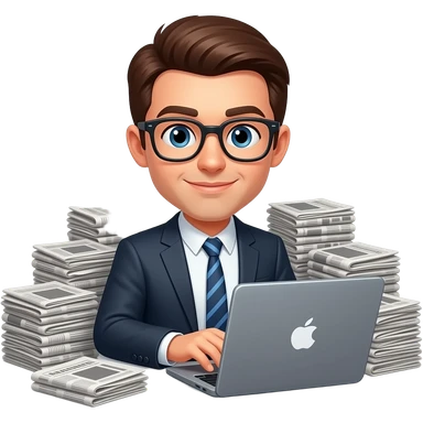 journalist with glasses, very short brown hair no tie working on pc emoji