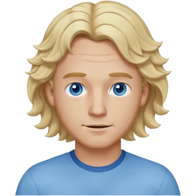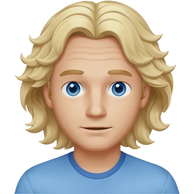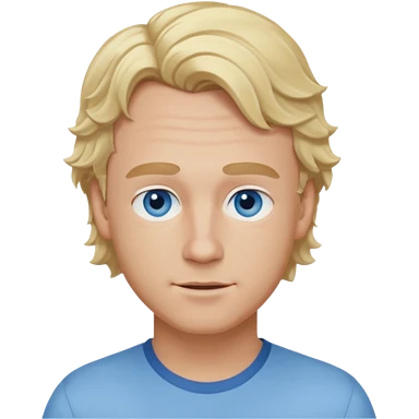Mike Gallagher from Summer of Fear with blonde wavy hair, light blue outfit, white and blue eyes emoji