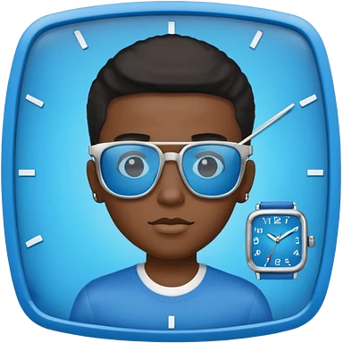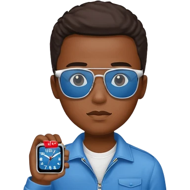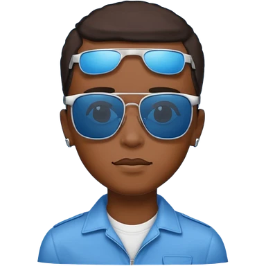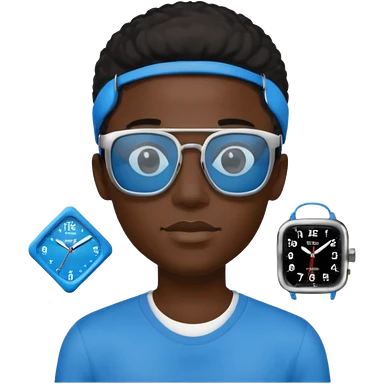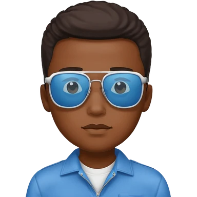 Un garçon noir avec des lunettes de soleil un peu bleu avec un cadran plutôt carré et SANS QU’ON VOIT SES YEUX. Et au dessus de sa tête il y a écrit BOUSs on dois pas voir ses yeux emoji