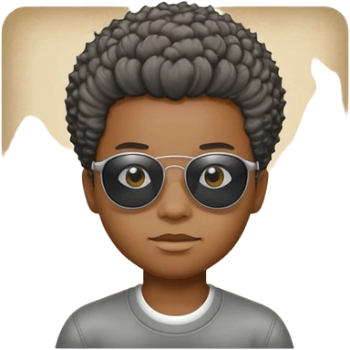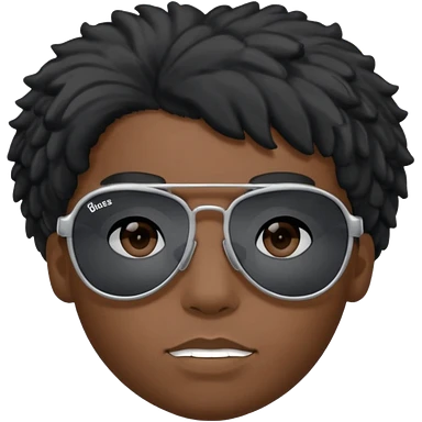Un garçon,de couleur noir avec des lunettes de soleil grise,il a des cheveux crépus et au dessus de sa tete il est écrit BOUSS sans qu’on voit ses yeux emoji
