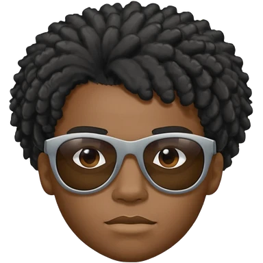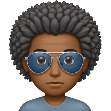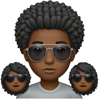 Noir avec des cheveux afro, avec des lunettes de soleil et un sourire charmeur emoji | AI Emoji Generator