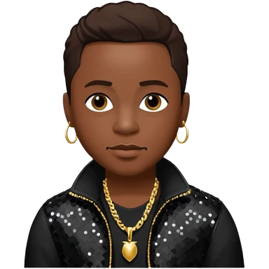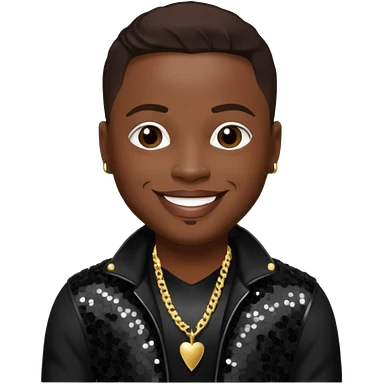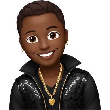 Nokio from Dru Hill with dark brown hair, black sequin outfit, dark skin emoji | AI Emoji Generator