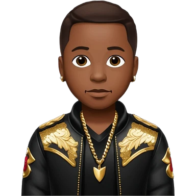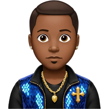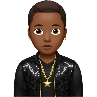 Woody from Dru Hill with dark brown hair, black sequin outfit, dark skin emoji