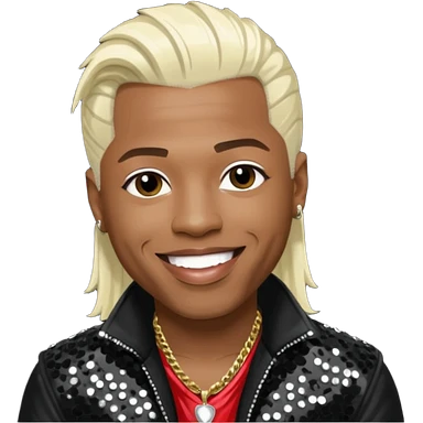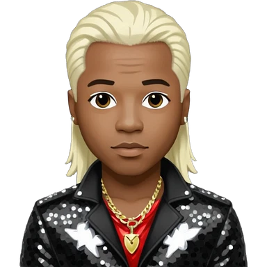 Sisqo from Dru Hill with platinum blonde hair, black sequin outfit, dark skin emoji