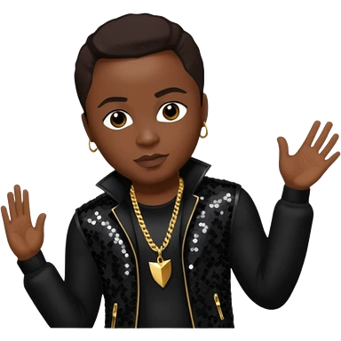Nokio from Dru Hill with dark brown hair, black sequin outfit, dark skin emoji
