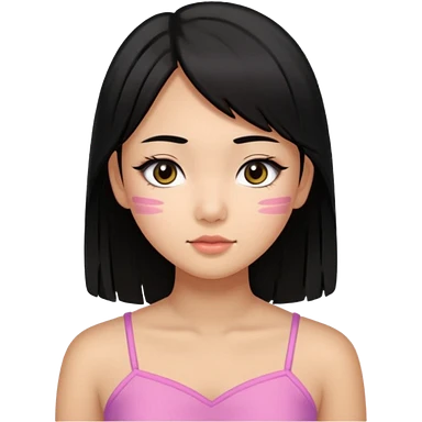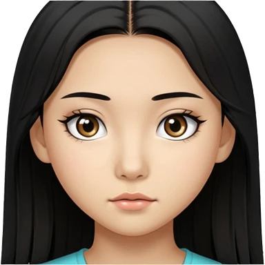 a tan chinese-american 15 year old girl with straight black hair down to her chest. mascara and a little blush. emoji