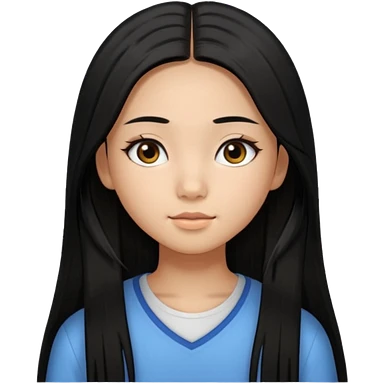 a tan chinese-american 15 year old girl with middle part long straight black hair down to her chest dark brown eyes. .eyelashes emoji