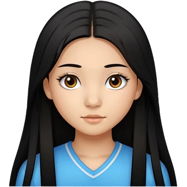 a tan chinese-american 15 year old girl with middle part long straight black hair down to her chest.eyelashes emoji