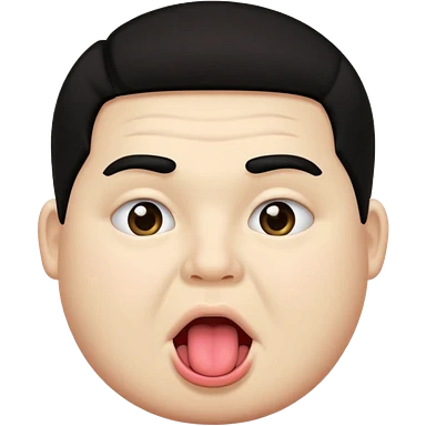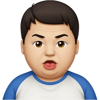Fat teen from kosovo with flat hair covering his forehead, with his tongue out emoji