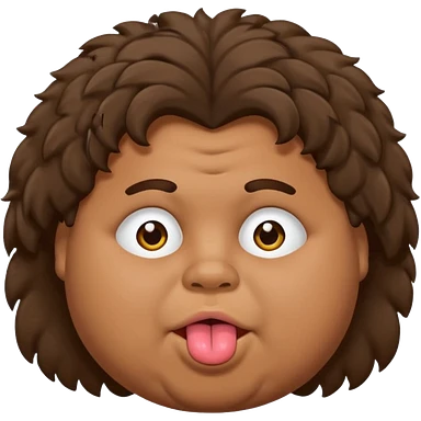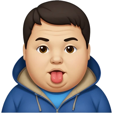 Fat teen from kosovo with flat and fluffy hair covering his forehead, with his tongue out emoji