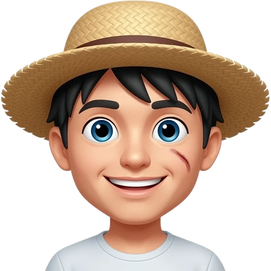 normal happy face emoji with a straw hat on its head and a scar below his right eye emoji