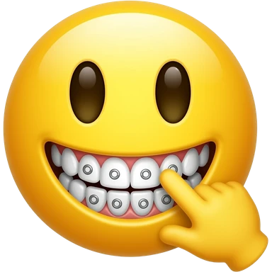 Normal yellow imoji showing his teeth with his hand his teeth have hold grills emoji