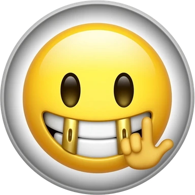 Normal yellow imoji showing his teeth with his hand his teeth have gold grills circle imoji emoji