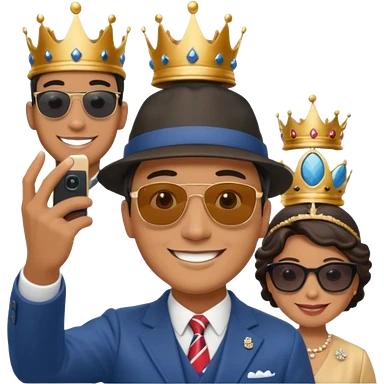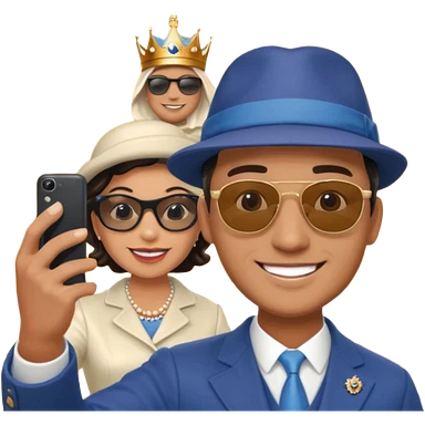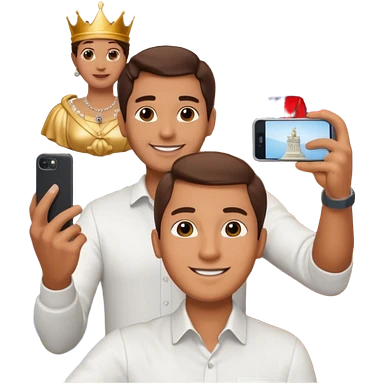 a normal man who's taking a selfie in a room with the statue of the queen elizabeth the II emoji