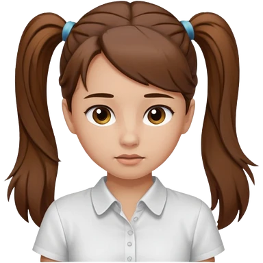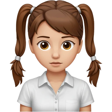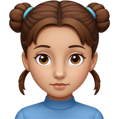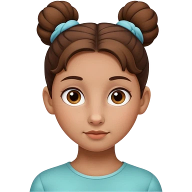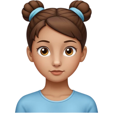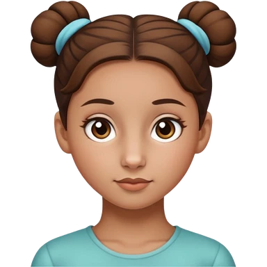 Normal skinned, tiny nosed, brown haired girl with sleek buns emoji | AI Emoji Generator