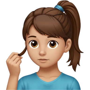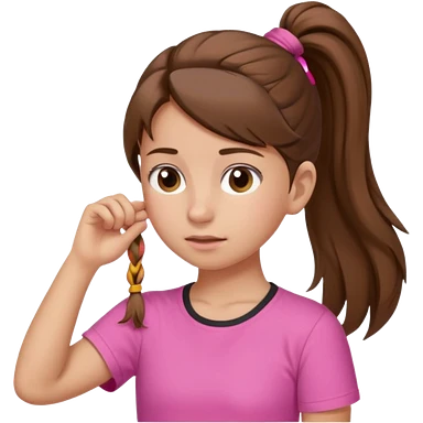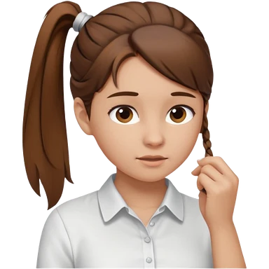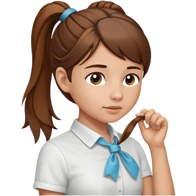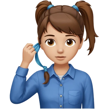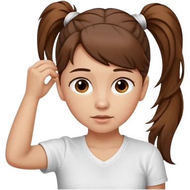 Normal skinned, tiny nosed, brown haired girl with Tying a ponytail emoji