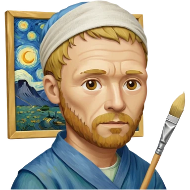 van gogh paints on a canvas. right ear is bandaged. emoji