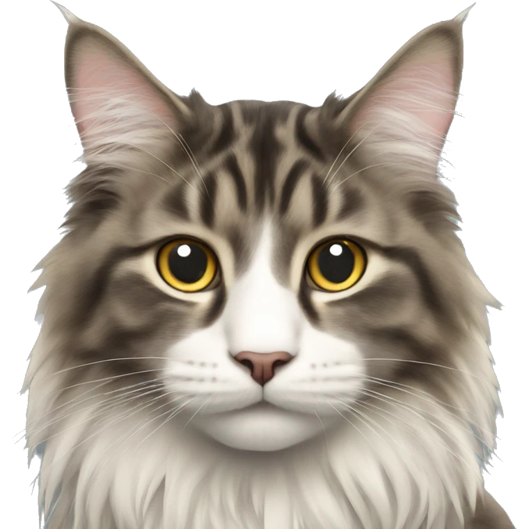 Norwegian forest cat with brown dark long fur and white neck fur and white nose emoji