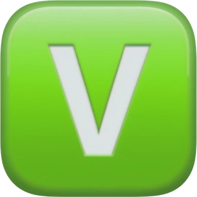 "3D premium,3D rounded-square icon in strong green with a beveled edge, bold serif white letter 'V'centered, strong specular highlights, inner glow, 1024x1024, png" emoji
