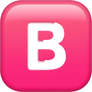 "3D premium,3D rounded-square icon in strong pink with a beveled edge, bold serif white letter 'B'centered, strong specular highlights, inner glow, 1024x1024, png" emoji