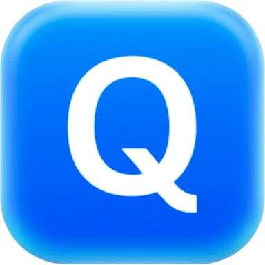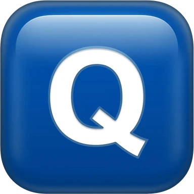 "3D premium,3D rounded-square icon in strong bleu with a beveled edge, bold serif white letter 'Q'centered, strong specular highlights, inner glow, 1024x1024, png" emoji