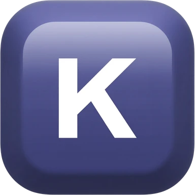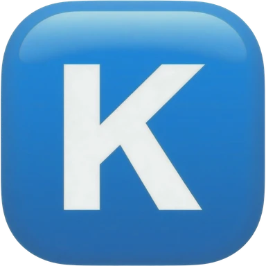 "3D premium,3D rounded-square icon in strong bleu with a beveled edge, bold serif white letter 'K'centered, strong specular highlights, inner glow, 1024x1024, png" emoji
