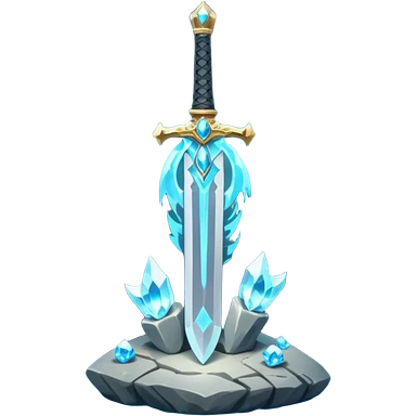 Shining silver sword with jeweled hilt, stuck in a stone, glowing aura. emoji
