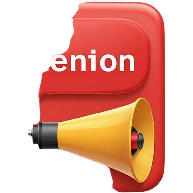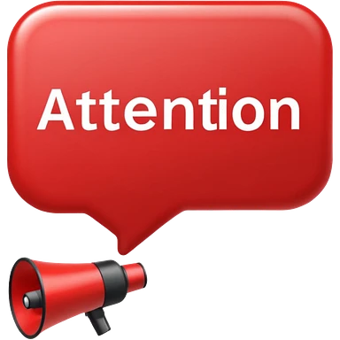 Red rounded rectangle speech bubble with bold text ‘Attention Please’. Add a loudspeaker overlapping from the right side with sound lines. Clean flat style. emoji