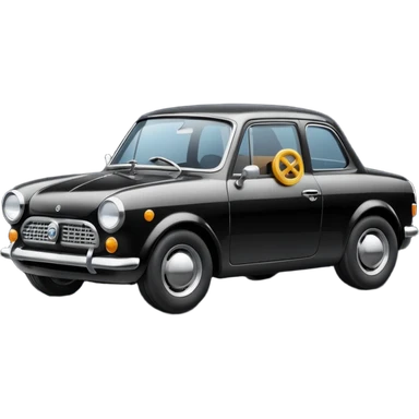 Automotive restoration emoji, black round badge, scale model car with small wrench icon, clean fresh paint, neat finish, soft shadows, balanced lighting, modern flat illustration, high clarity, centered, professional but not glowing emoji
