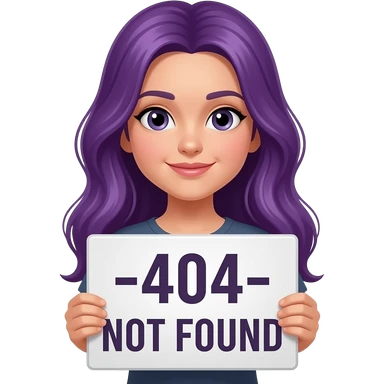 girl with long purple hair holding a -404- NOT FOUND sign emoji