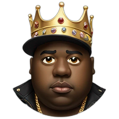 Notorious BIG with hearts on his eyes and a tilted crown on his head emoji