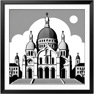 now I want a sticker with the Sacre Coeur church in black and white emoji | AI Emoji Generator