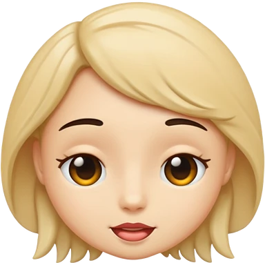 nude woman short curly brown mullet brown eyes white skin biting glowing plum emoji