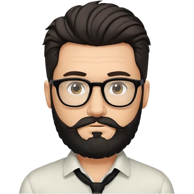 یه پسر سفید پوست با ریش مشکی و مدل موی جذاب که موهاش رو به بالاهست و عینک زده مدل موهاش اسپایکی باشه و لباسش هم رسمی نباشه emoji