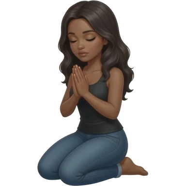 submissive midtone black woman kneeling down with prayer hands emoji
