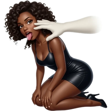 submissive midtone black woman kneeling down with white hand choking her with her tongue out with gasses and curly hair emoji