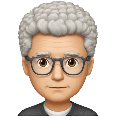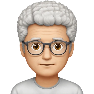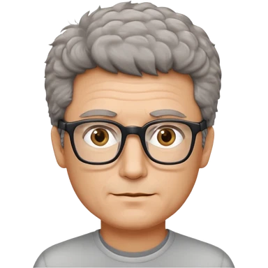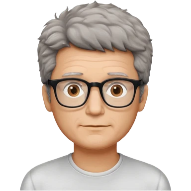 man 50 very short salt and pepper fluffy hair, brown eyes, rectangle glasses emoji