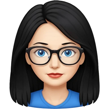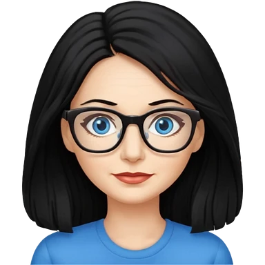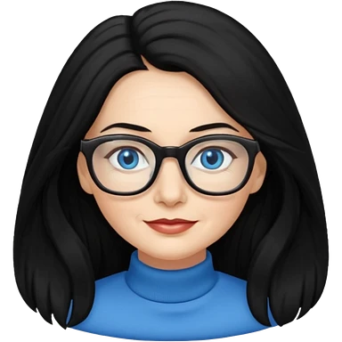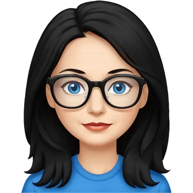 woman 50 years old, long and fluffy black hair, blue eyes, glasses emoji