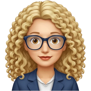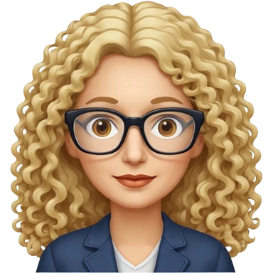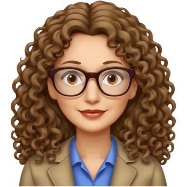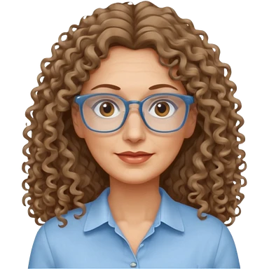 woman 50 years old dark blond long curly hair, brown eyes ans rectangle glasses emoji