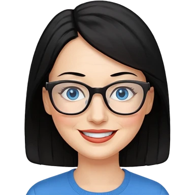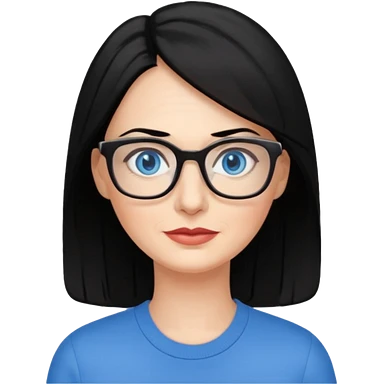 woman 50 years old, black hair, blue eyes, glasses emoji