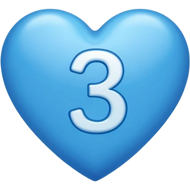 number "3" print inside the blue heart shape emoji
