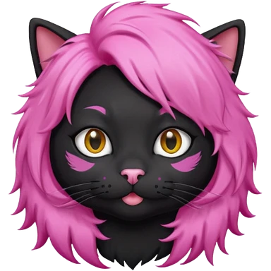 White cat wearing pink curly wig, black sunglasses, black T-shirt emoji