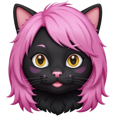 Orange Yellow cat wearing pink bob hair wig, circle glasses emoji