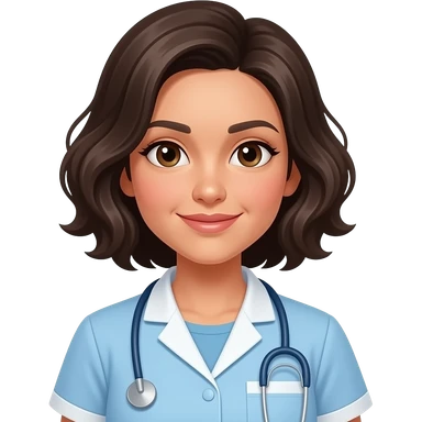 Nurse, long hair,black hair, black eyes, false eyelashes,eyeliner, emoji