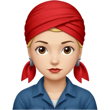 Rosie the Riveter, determined face, red bandana, blue shirt emoji