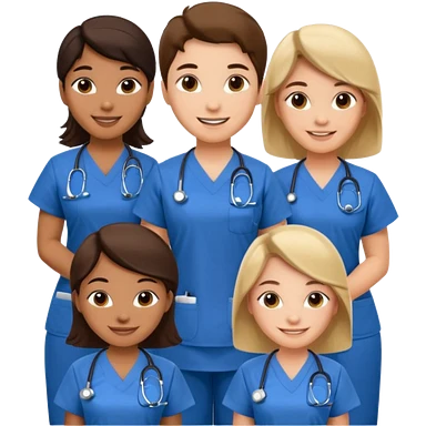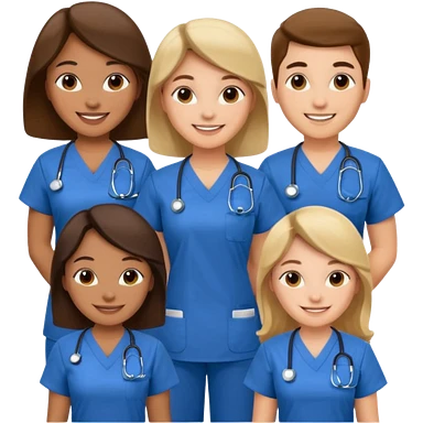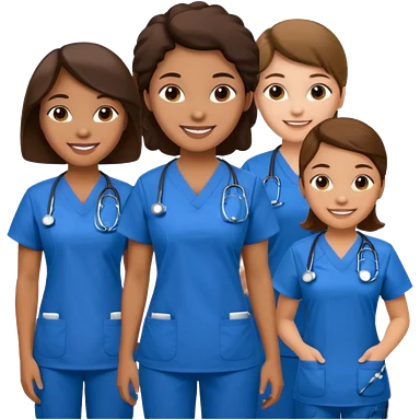 3 different nurses, wearing green and blue work clothes, in a classroom, "Academy" written in white on board emoji