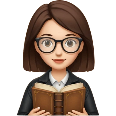 Mujer blanca, cabello negro largo, con lentes negros de lectura , ojos pequeños , nutrióloga emoji