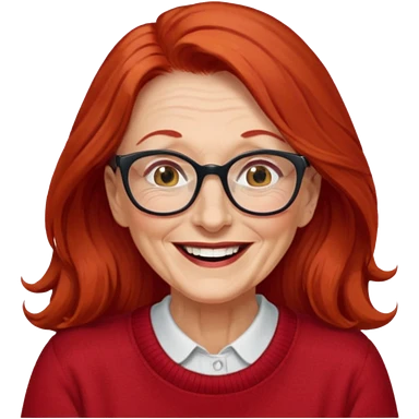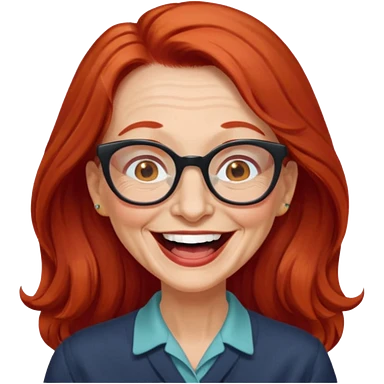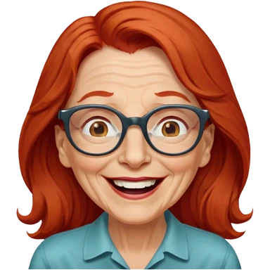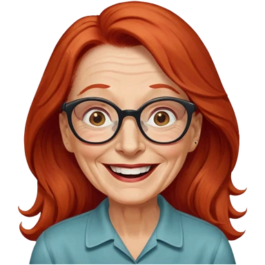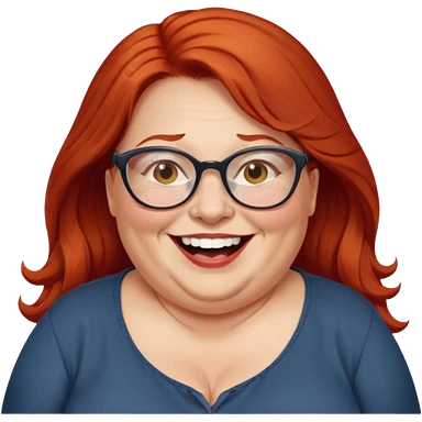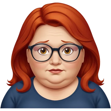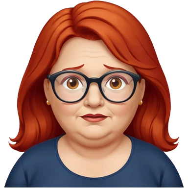 obese; older 50's ; long red hair ; women hazel eyes; glasses emoji