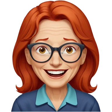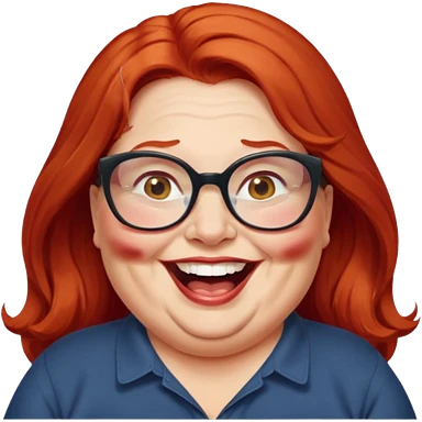 obese; older 50's ; long red hair ; women hazel eyes; glasses ; laughing emoji